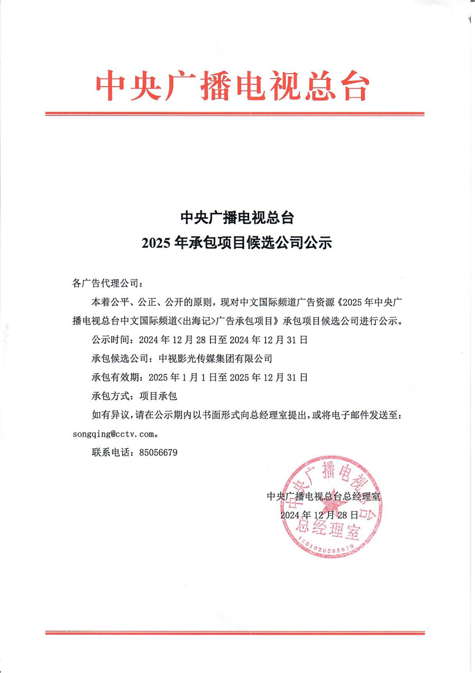 2025年CCTV-4《出海记》承包项目候选公司公示